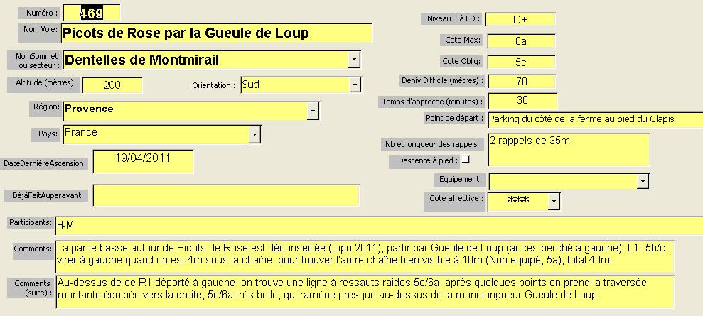Chamonix-Glière www.GrandeVoie.com     Voici des "grandes voies" d'escalade que j'ai parcourues au fil des ans... Utilisez un bon topo récent (éboulements, itinéraire, équipement, usure/patin, règlementations) et votre propre jugement !  Grimpez avec plaisir en respectant les conseils de sécurité...  Hervé, Fontainebleau.